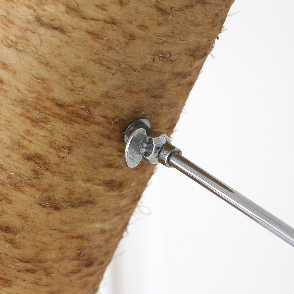 プラスチックを毛羽立たせたような面白いテクスチャーのシェードに、シェードの素材感が際立つシンプルな支柱のデザイン。