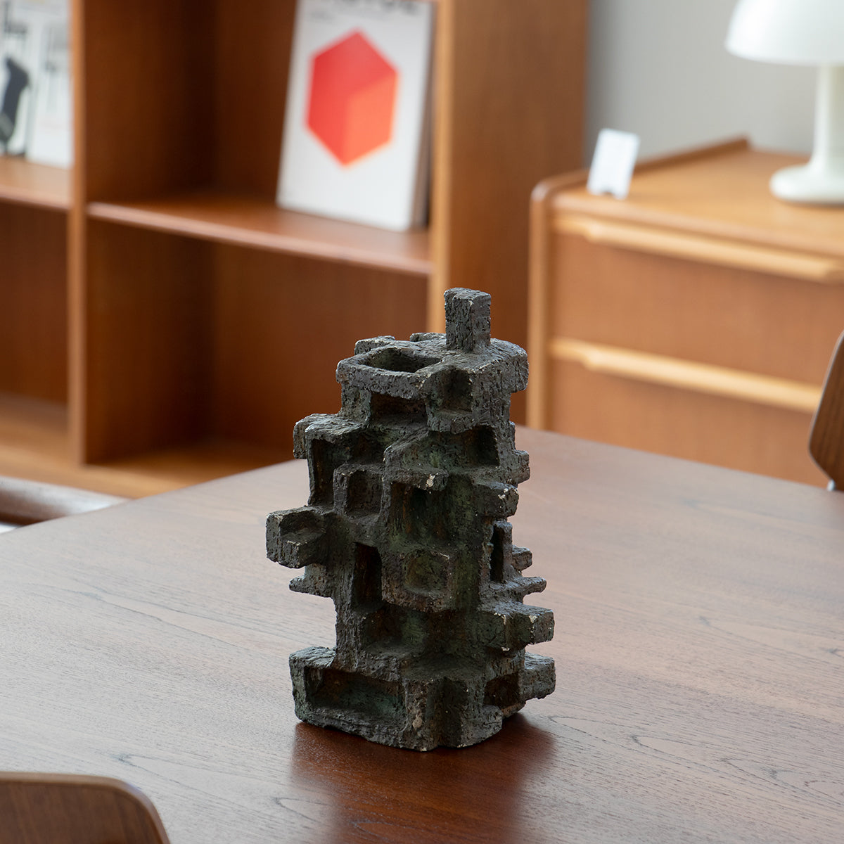 オランダで買い付けた建築的な構造を想起させる、抽象彫刻作品。