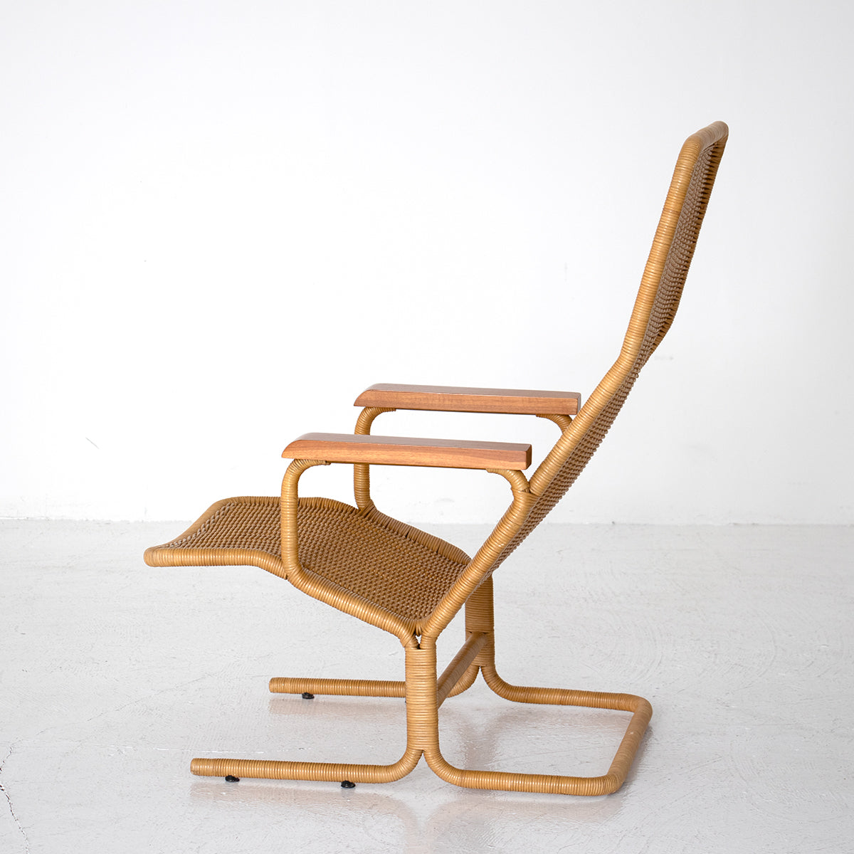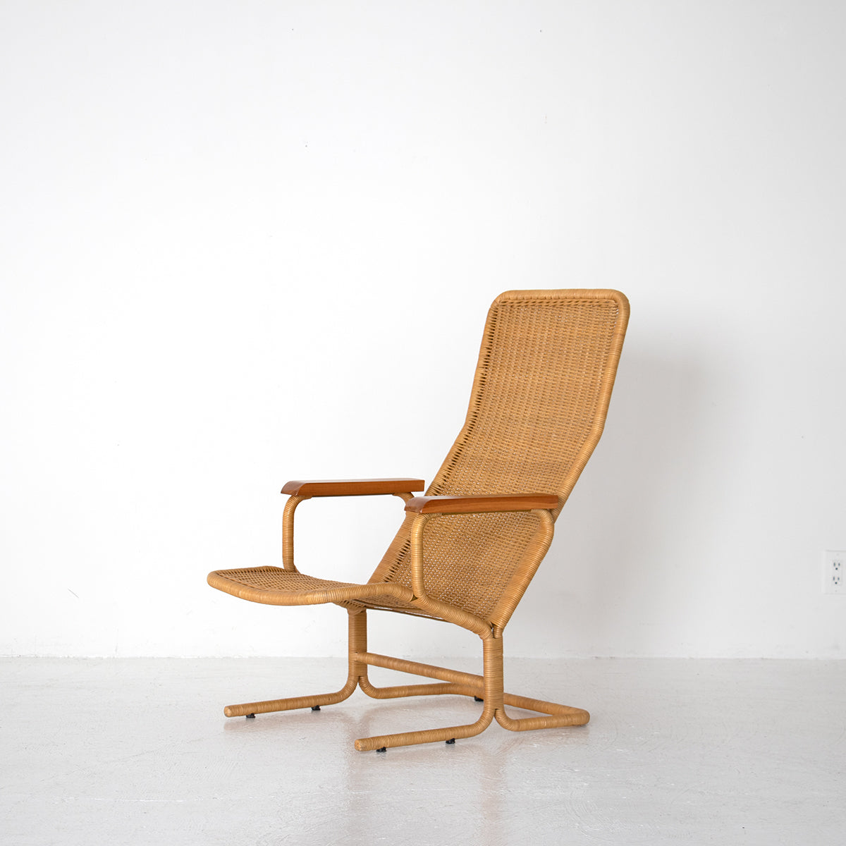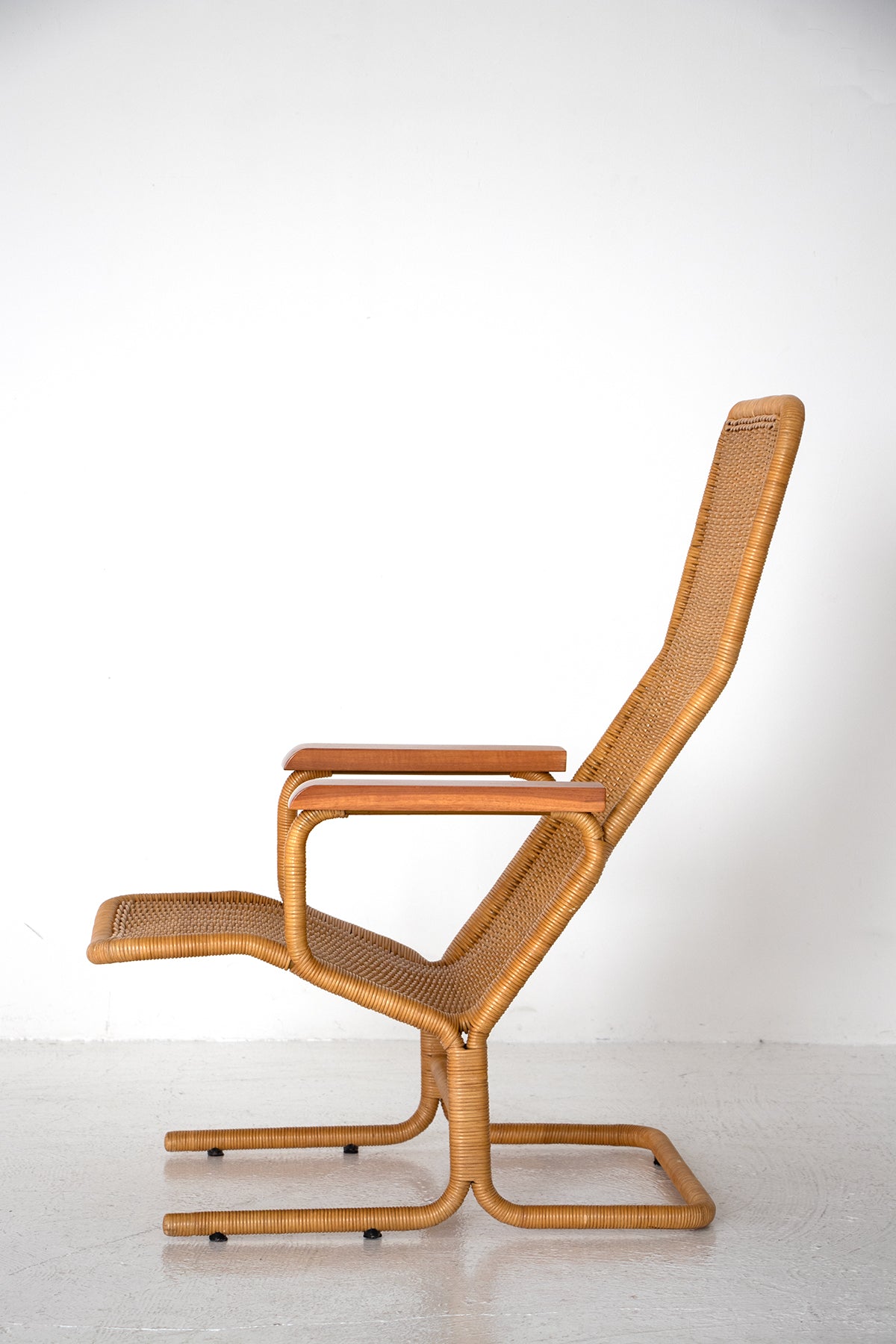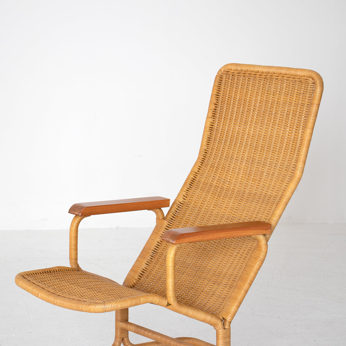 1960年代にオランダのデザイナー、Dirk van Sliedregt が Gebroeders Jonkers(Noordwolde)社のためにデザインしたラタンシートのラウンジチェアです。