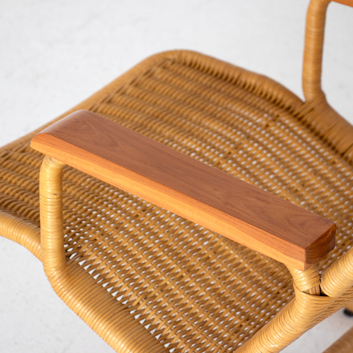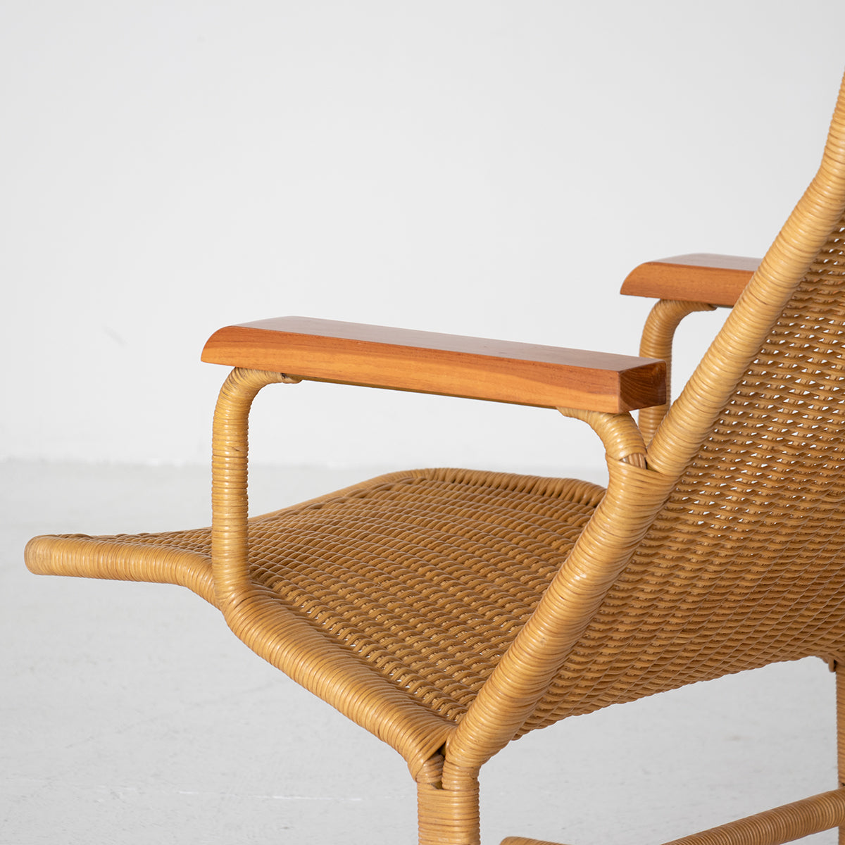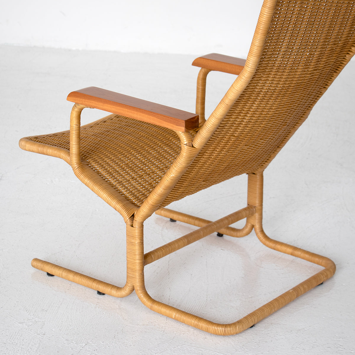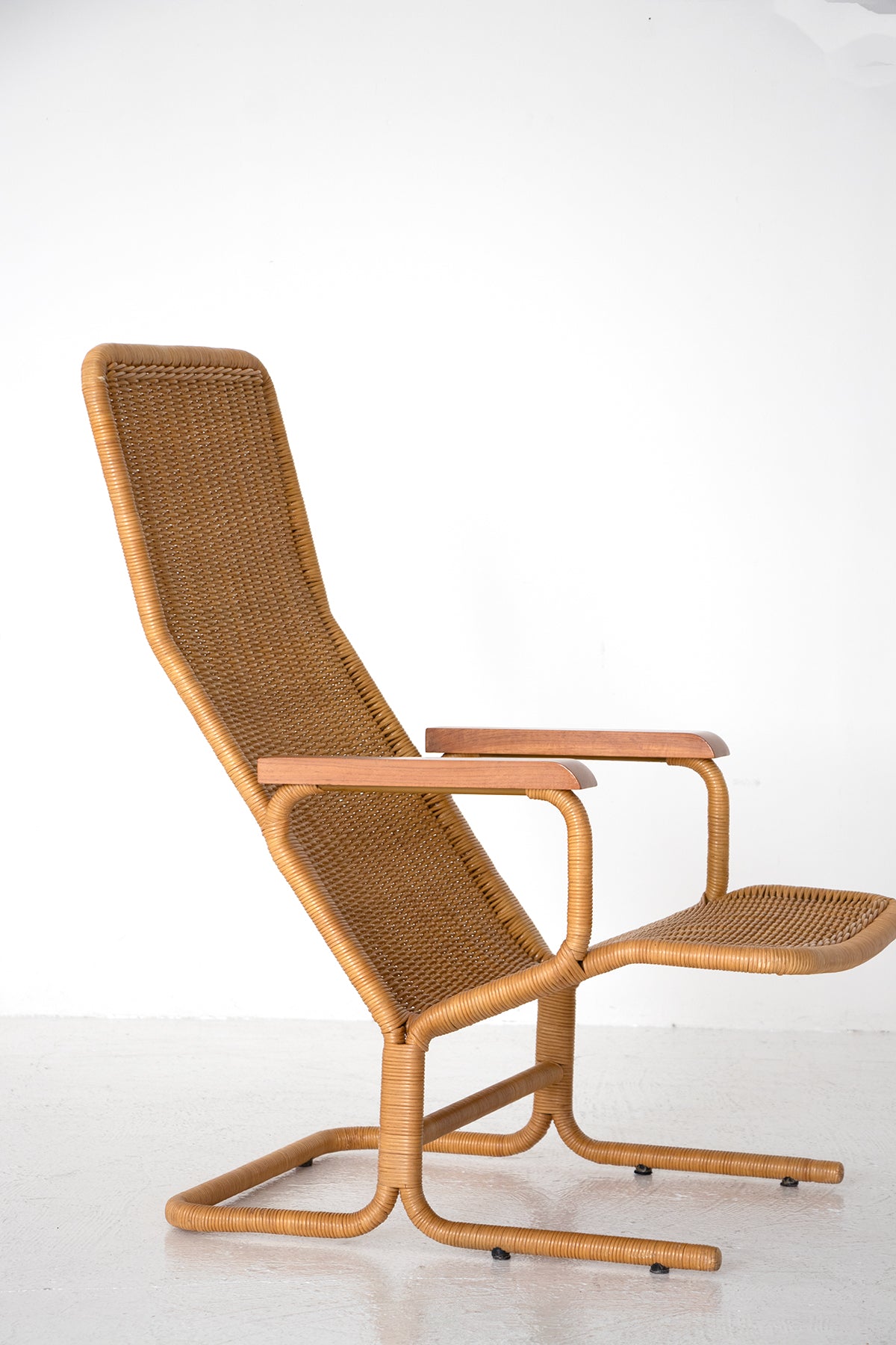1960年代にオランダのデザイナー、Dirk van Sliedregt が Gebroeders Jonkers(Noordwolde)社のためにデザインしたラタンシートのラウンジチェアです。