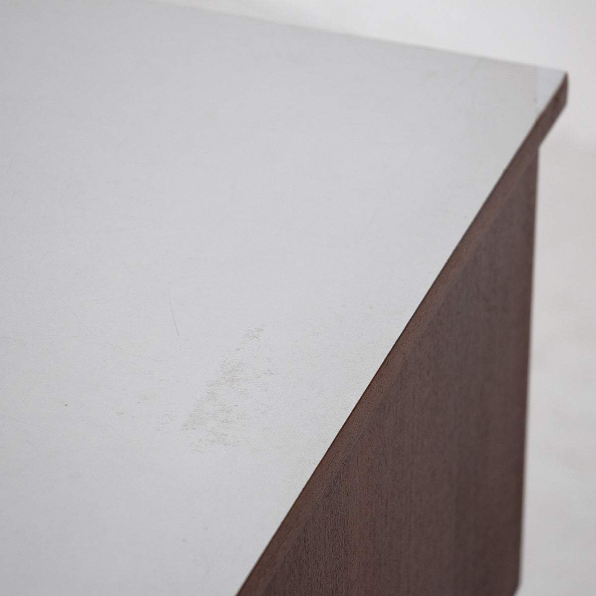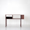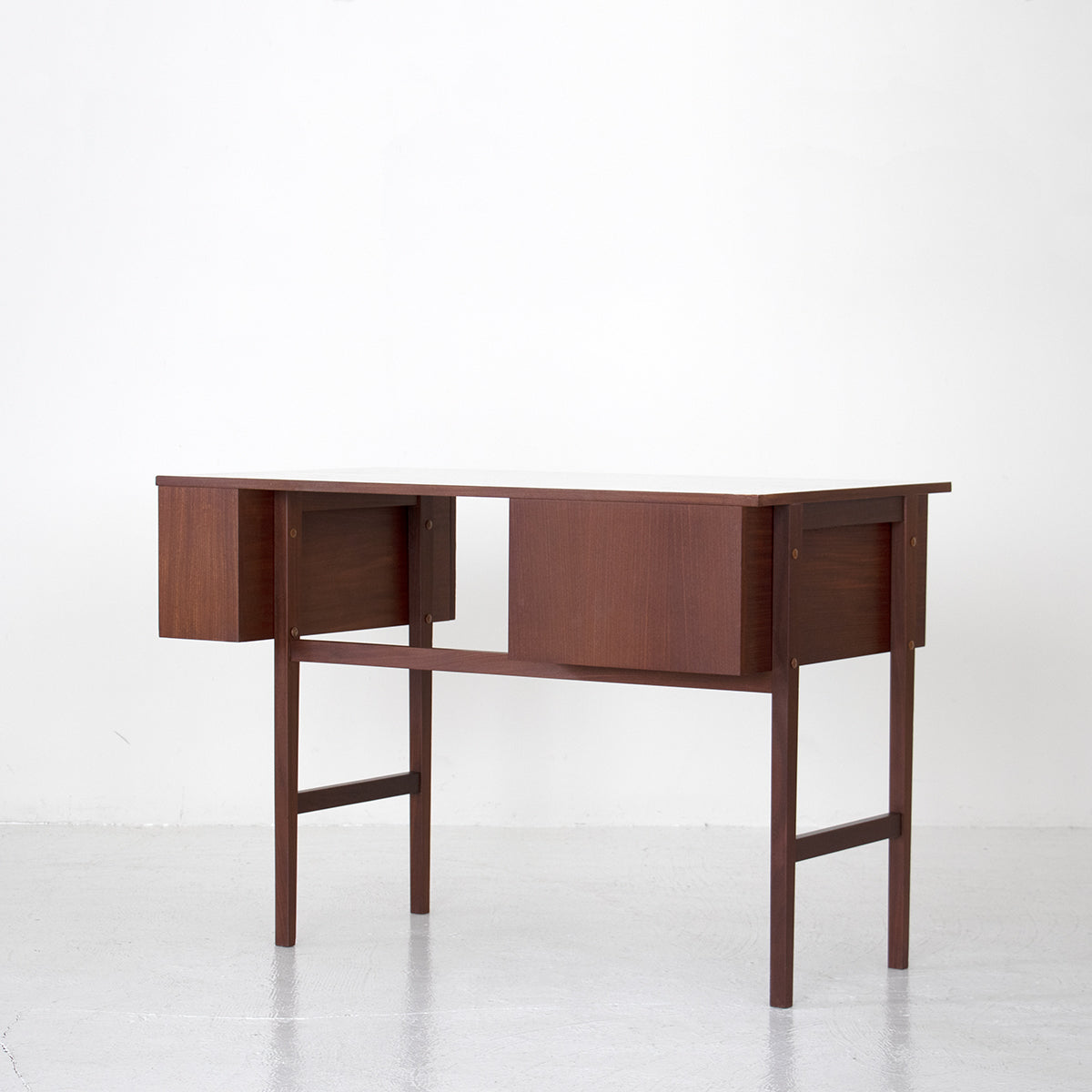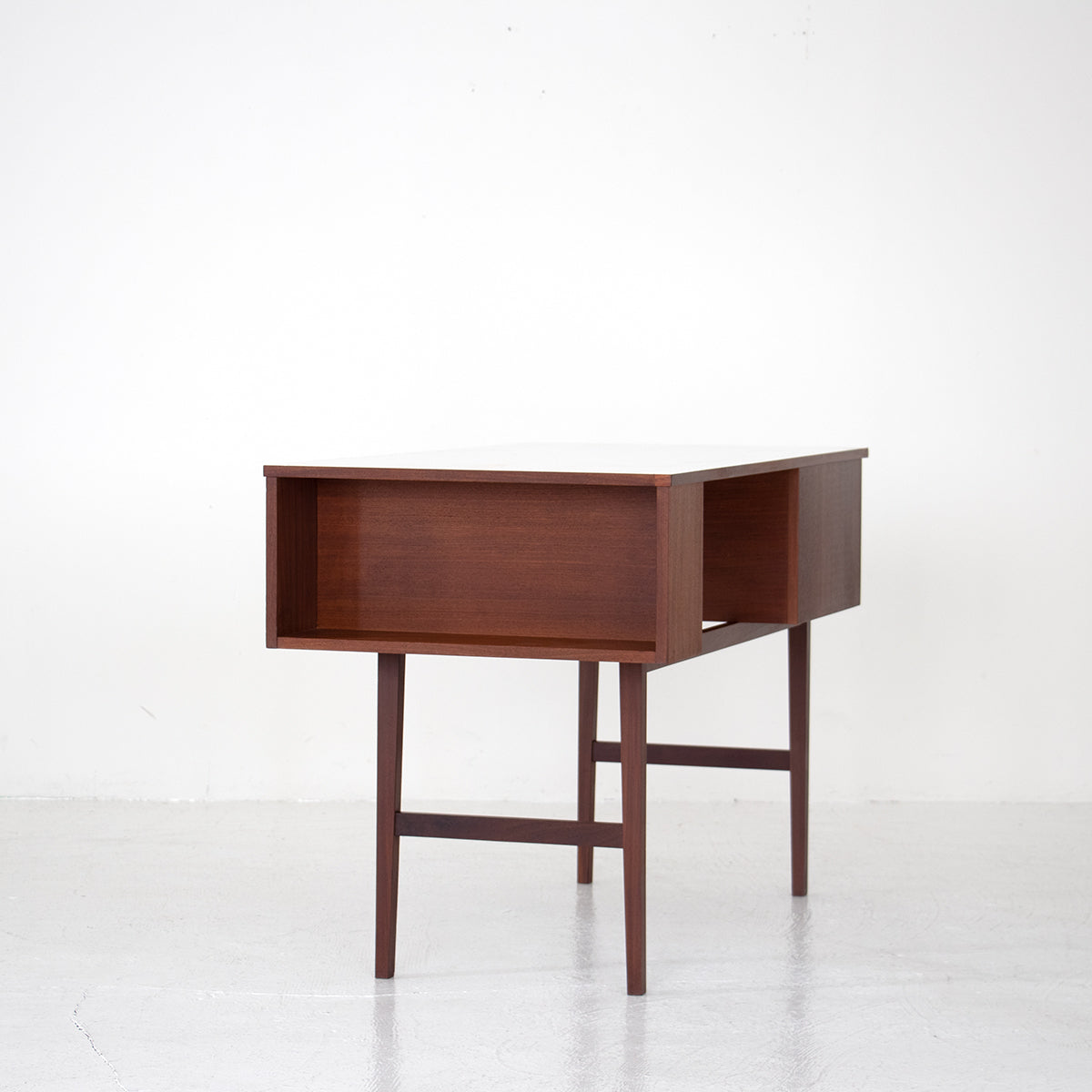 チーク材に白のメラミン天板と抽斗がアクセントになったデザインが特徴のデスクです。