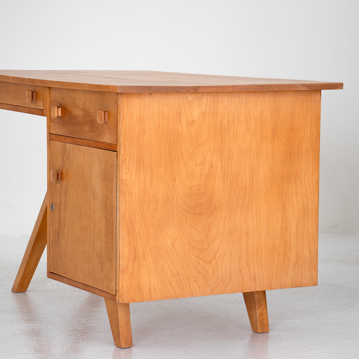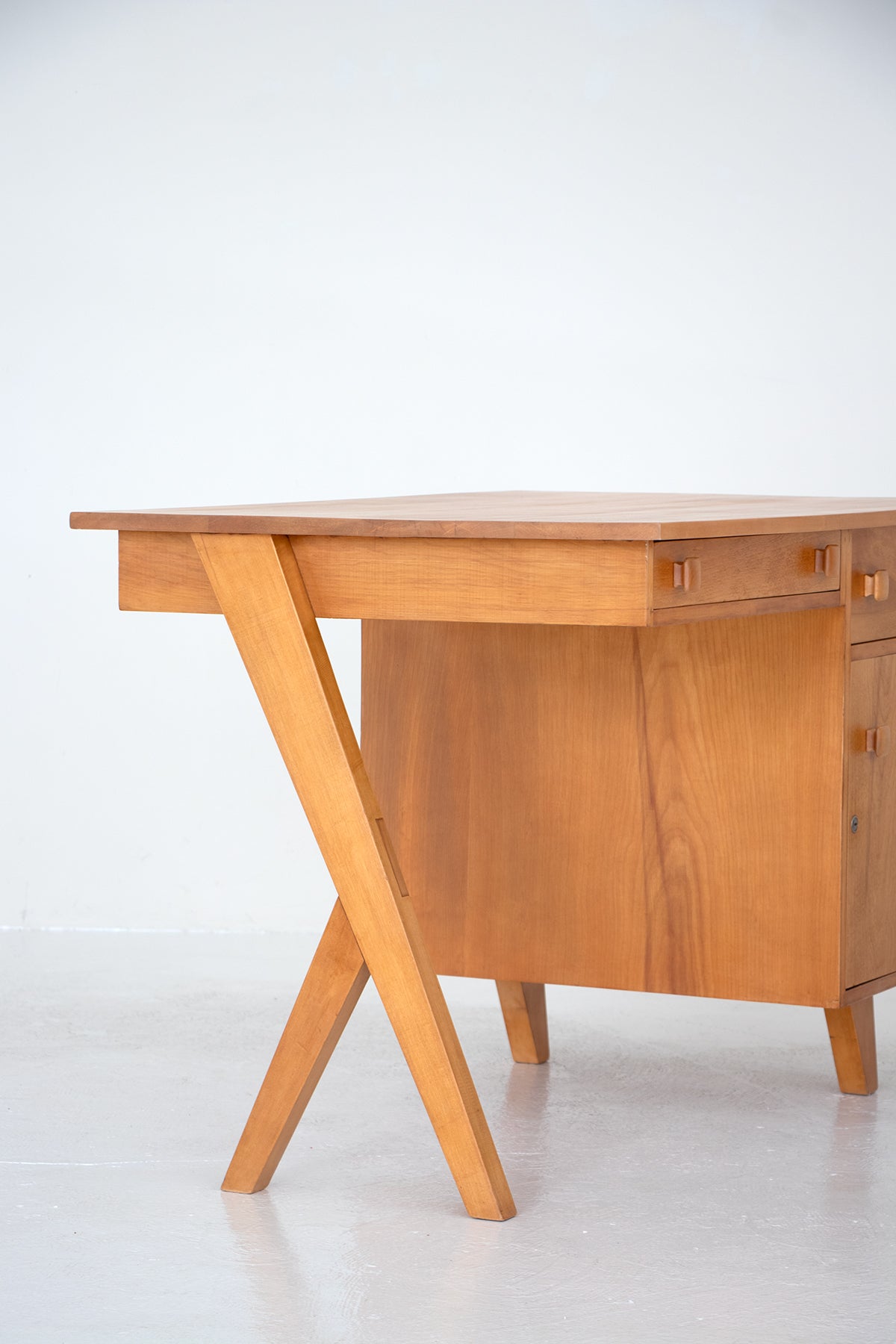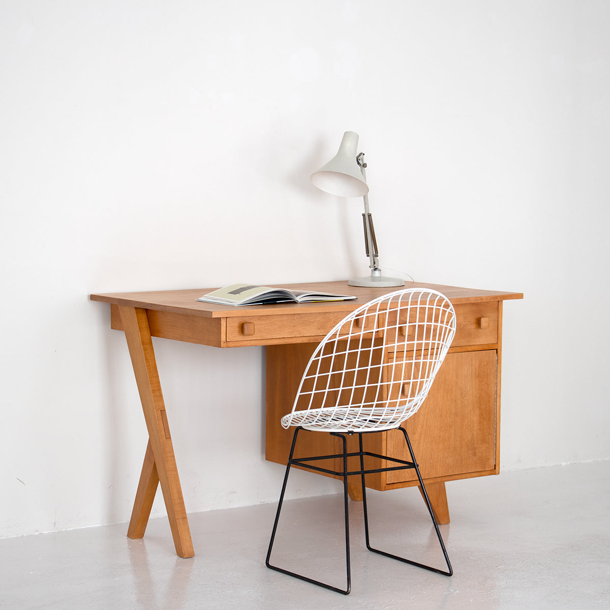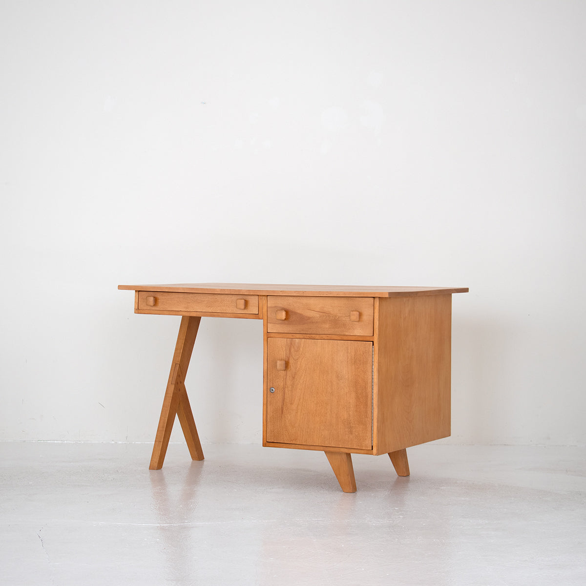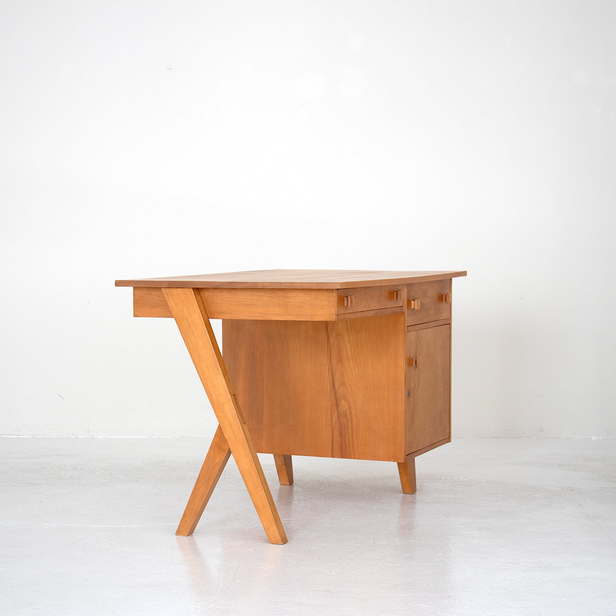 直線で構成された素朴なデザインながら、脚部の意匠が印象的な一台。