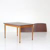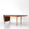 メイン天板の下からエクステンションの天板が出る定番のドローリーフ型ではなく、両サイドにぶら下げた天板を跳ね上げて使用するドロップリーフ型。